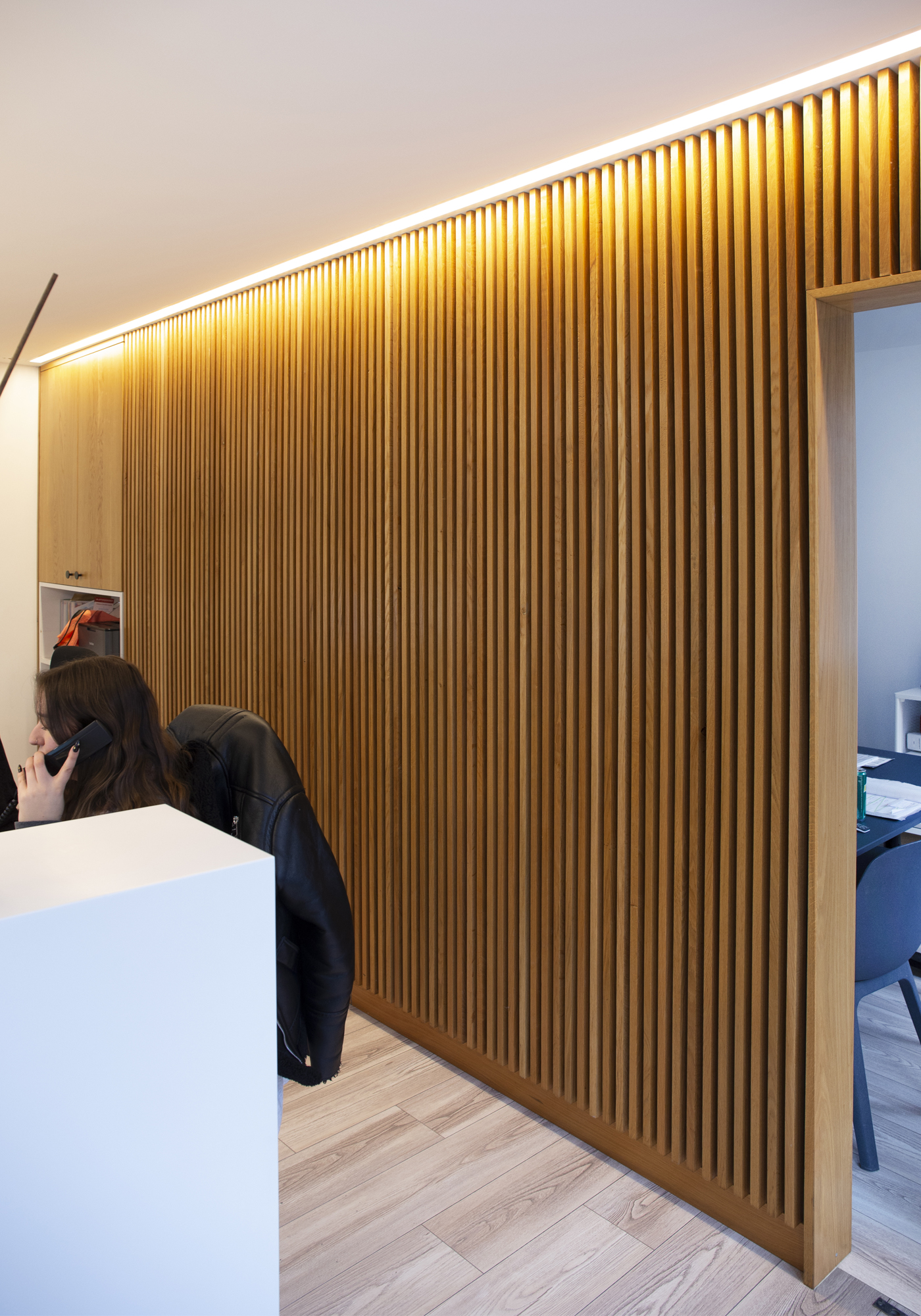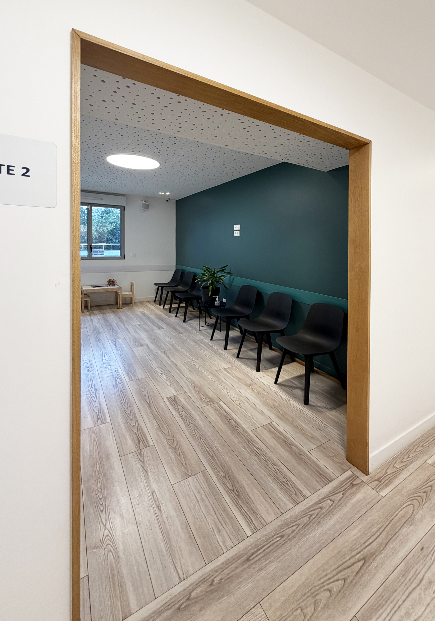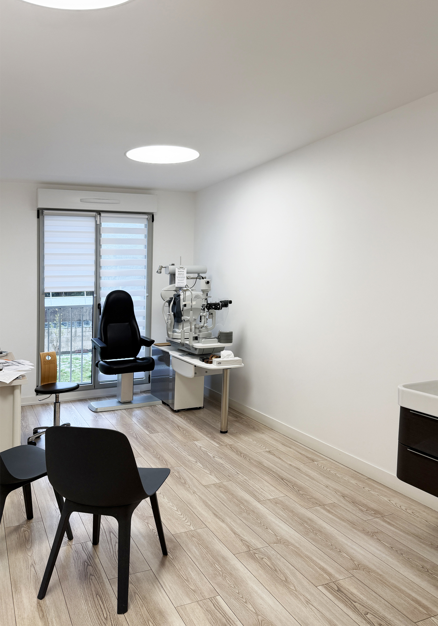 Le projet de construction de cette clinique ophtalmologique répond à un cahier des charges précis lié aux impératifs spécifiques de la spécialité. Cela implique une réflexion sur les gestes médicaux pratiqués et sur les contraintes propres liées aux machines utilisées. Les incidences se répercutent sur la volumétrie des espaces créés Le plan s’organise autour des flux patients et de l’organisation des soins médicaux. Le cheminement des patients doit être fluide et intuitif. Une attention particulière est apportée à l’acoustique des lieux, en particulier des salles d’attente. L’ambiance lumineuse fait également l’objet d’un traitement particulier : prescription de luminaires non éblouissants (emploi de verres prismatiques), mise en place d’éclairages indirects, températures de lumière appropriées.
