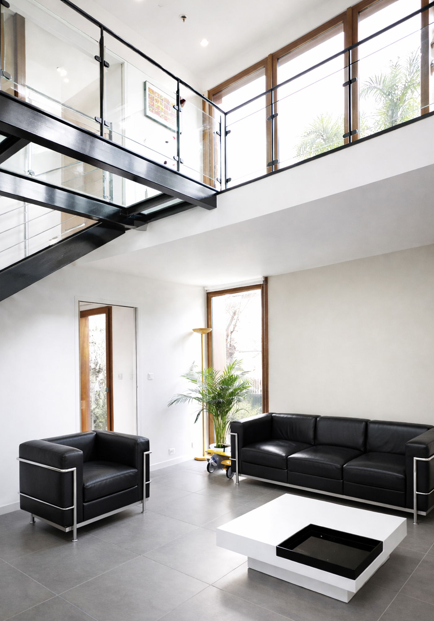 Le projet se situe dans un quartier résidentiel de Joinville le Pont, à proximité des bords de Marne. La conception de la maison découle de la contrainte du risque inondation. Le bâtiment est perché sur des pilotis qui libèrent l’espace au sol. A l’image d’un ponton flottant au dessus du jardin, une terrasse généreuse vient ceinturer la maison et constitue une véritable pièce extérieure, toute offerte à la salle à manger. L’aménagement intérieur s’organise autour d’un «cœur» double hauteur largement vitré, traversé par une passerelle squelettique en métal et verre.